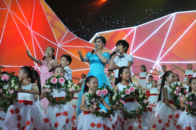 李谷一与孩子们一起演唱《歌唱祖国》