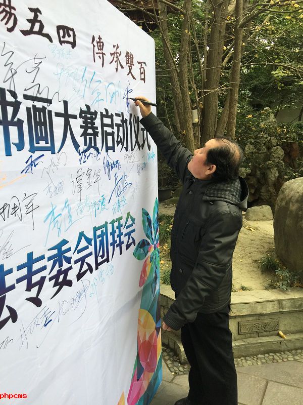 四川省青少年文联主席兼美术书法专委会主席 左志丹先生在活动签名墙上签名