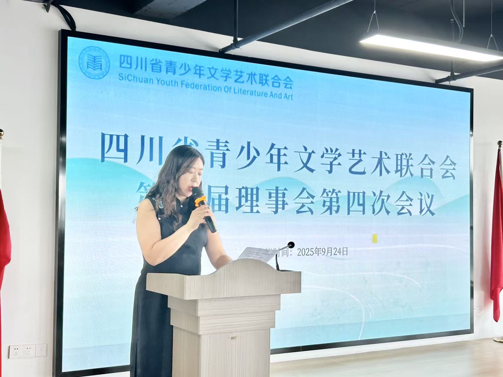 本网讯 2025年9月24日下午,四川省青少年文学艺术联合会(以下简称“省青少年文联”)第三届理事会第四次会议在成都市武侯区簇锦文体中心隆重举行。省青少年文联主席左志丹、执行主席袁亮等主席团成员、秘书处、监事会党支部主要负责人以及常务理事、理事、会员代表出席会议。