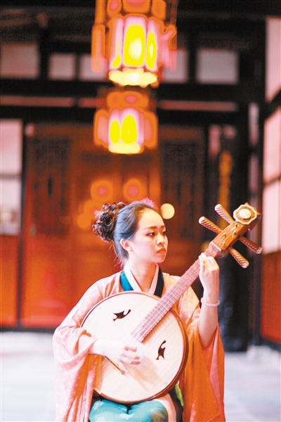 除了专业的历史论坛、讲座,三国季期间开展的曲艺表演,则让观众感受了博物馆的文化雅韵。从8月16日到10月16日,在为期两个月的时间内,每逢周六晚上,“天姿国乐”团队都会在武侯祠上演点位表演。祠堂之间,有演员轻轻拨动着琵琶弦乐;红墙之中,有轻轻吹起的悠扬竹笛;水榭池畔,回荡着古筝琴音。观众的情绪,也在各种清雅音乐伴随中,进入祠堂古风的历史情境,在丝竹琴音中,感受博物馆的古朴典雅之风和国乐魅力。