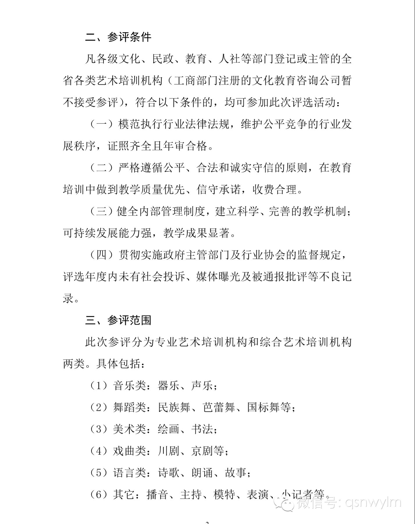 二、参评条件凡各级文化、民政、教育、人社等部门登记或主管的全省各类艺术培训机构(工商部门注册的文化教育咨询公司暂不接受参评),符合以下条件的,均可参加此次评选活动: