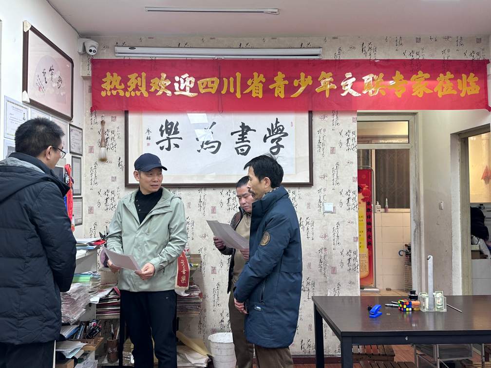本网讯 2025年12月26日,省青少年文联执行主席袁亮一行到会员单位开展调研。了解会员生存状况、会员服务满意度、活动开展效果、社会反响、听取意见建议。书法专委会执行会长赵小山参加调研。书法专委会组织蜀宝堂书法工作室等6家会员单位集中座谈,深入交流行业生存状况,分析存在问题和交流解决办法。