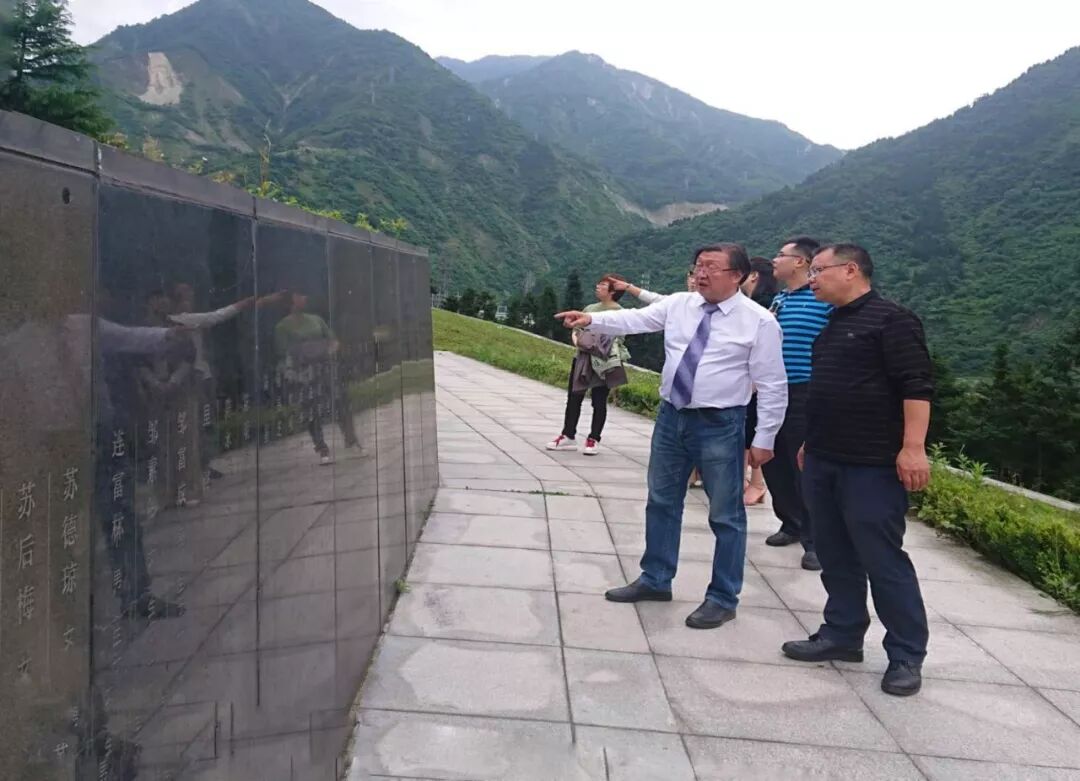 2018年5月30日一早从都江堰市出发,前往汶川县七一映秀中学。一路顺利,车队很快到达映秀镇。映秀七一中学校长熊作富等校领导和两三百名家长代表及老师早已在学校等候。一面巨大的党旗墙将学校衬托特格外醒目与伟岸。熊作富校长首先领着我们参观学校文化墙,他亲子为我们解说学校的发展和曲折的历史。