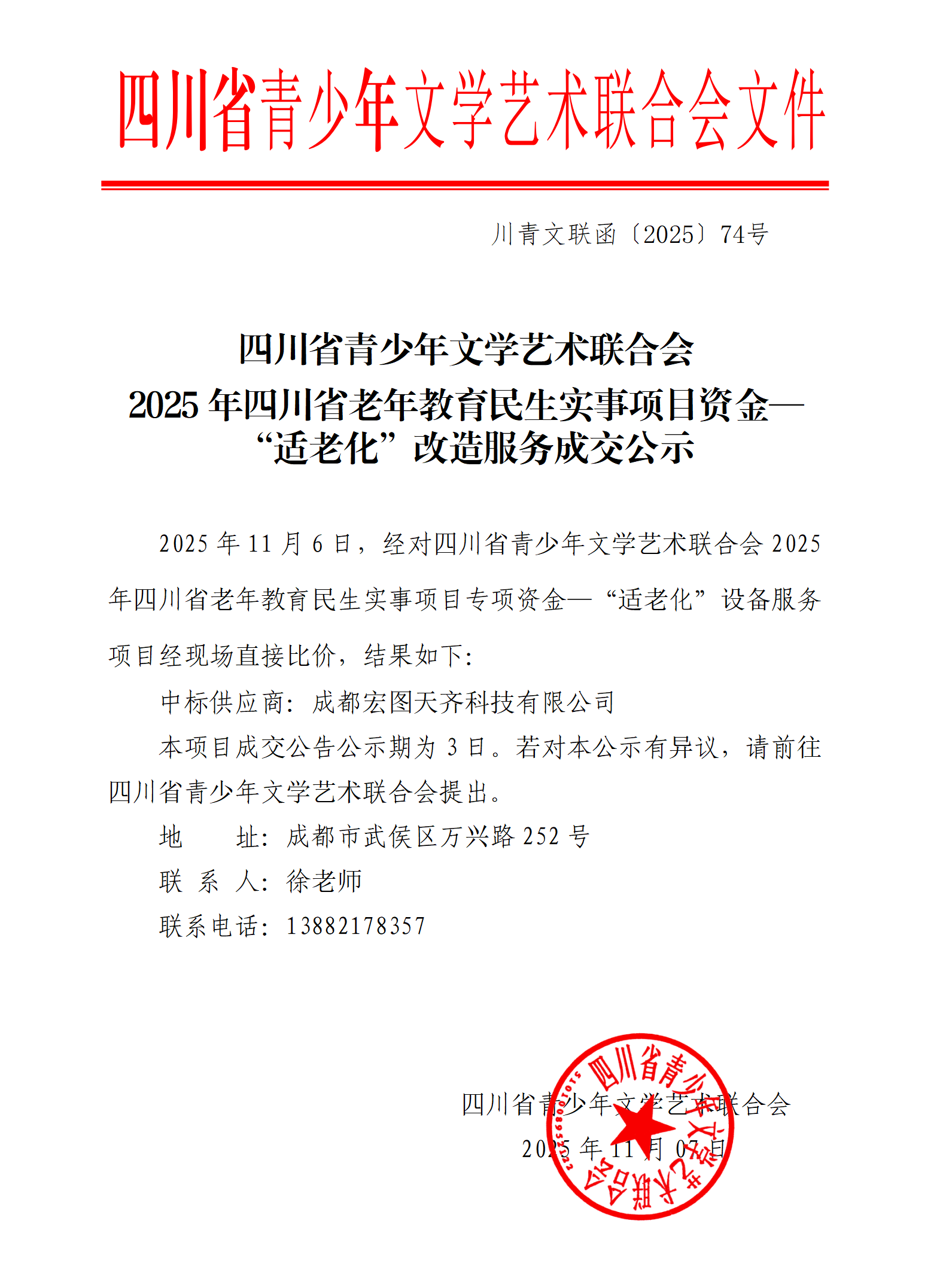 省青少年文联2025年四川省老年教育民生实事项目资金— “适老化”设备服务成交公示