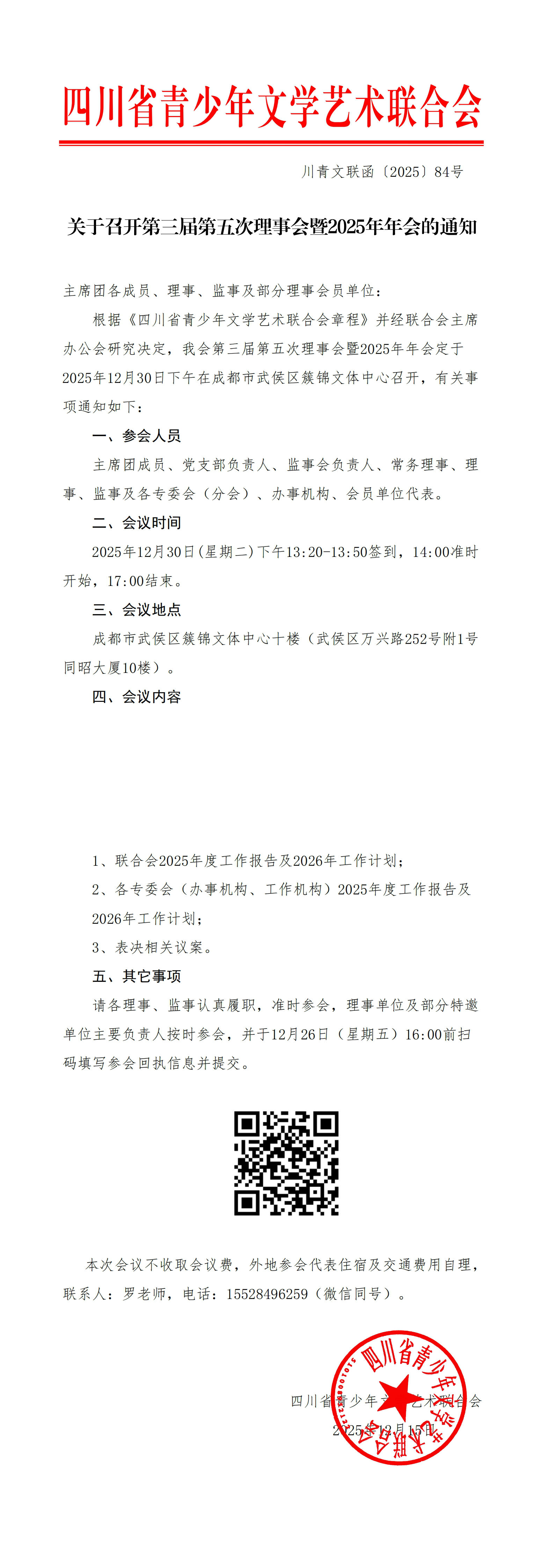 四川省青少年文联关于召开第三届第五次理事会暨2025年年会的通知